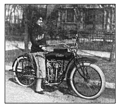 ![]() Sadie Grimm standing beside her 1914 7hp "Big Twin" motorcycle |