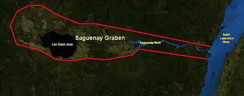The Saguenay Graben is a rift valley or graben in the geological Grenville Province of southern Quebec, Canada. It is an elongated flat-bottomed basin 250 km (155 mi) long and 50 km (31 mi) wide, bounded by normal faults running parallel to its length.[1]