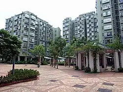 Lakeside Garden (Chinese: 翠塘花園) is primarily a subsidised private housing estate[18] and Flat-for-Sale Scheme estate on the reclaimed land.[19] It is the third rural housing scheme developed by Hong Kong Housing Society. It consists of ten private residential blocks and one rental residential block, completed in 1997.[16] The rental block provides affordable rental housing similar to those of the Hong Kong Housing Authority.[16][20]