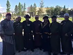Saidash with other Tuvan throat singing masters, 2016. Kyzyl