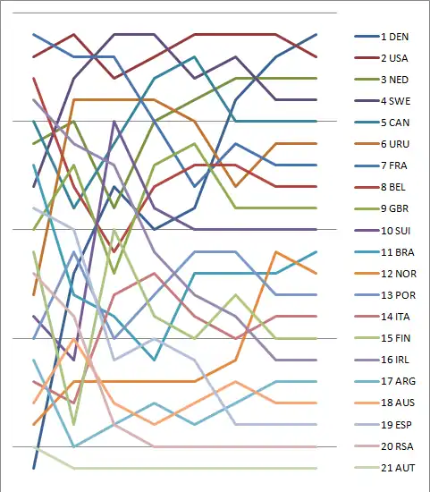 Graph showing the daily standings in the Firefly during the 1948 Summer Olympics