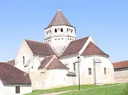 The present church was probably built in the eleventh century at the top of a hill overlooking the right bank of the Yonne River.[2] It is on the site of the martyrdom of Saint Cydroine and replaced a primitive abbey church, cited in the Sacramentary as a parish from the ninth century, for use by the Abbey of Saint-Amand.[3] The priory then belonged to the monks of the abbey of Saint-Rémi de Sens who ceded it to the Benedictine monastery of La Charité-sur-Loire.[3] This belonged to the Order of Cluny.[4] A first mention of the priory dates from 1162 in a pontifical act where Pope Alexander II settled a neighborhood dispute between the Benedictine monks of La Charité-sur-Loire who lived there and the Premonstratensians of Dilo.[5]