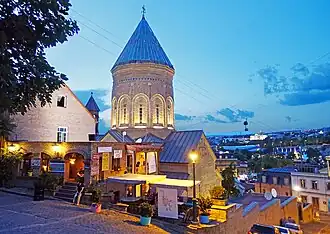 Saint George's Church (Armenian: Սուրբ Գևորգ եկեղեցի, Surb Gevorg yekeghetsi; Georgian: სურფგევორქი, sur′pgevork′i)[3][4] is a 13th-century Armenian church in the old city of Tbilisi, Georgia's capital.[5] It is one of the two functioning Armenian churches in Tbilisi and is the cathedral of the Georgian Diocese of the Armenian Apostolic Church.[2] It is located in the south-western corner of Vakhtang Gorgasali Square (Meidani) and is overlooked by the ruins of Narikala fortress.[6]