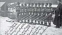 The hockey team of the St. Joseph's Mission Indian Residential School; an example of how students were made to participate in white Canadian cultural activities while giving up their Indigenous cultural activities.