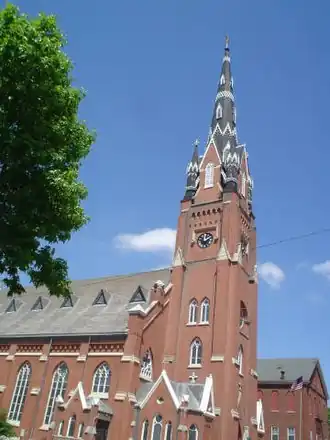 Saint Mary's Catholic Church is a former parish of the Archdiocese of Dubuque. The church is located in Dubuque, Iowa, United States, at the corner of 15th and White Streets. The church is recognizable by its steeple– one of the tallest in the area. The church property was added to the National Register of Historic Places as an historic district in 2015, and the various buildings were included as contributing properties in the Washington Residential Historic District later in the same year.[2]
