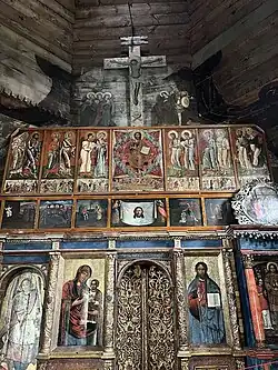 In 1947–1989, the church was closed by the Soviet authorities. In 2009–2014, the church was restored with wood shingles (designed by architect Serhii Pinkovskyi, and was renovated by I. Bukhanskyi).[6] Next to the wooden church, a stone church of the Archangel Michael was built in the early 1990s and consecrated in 1995 (architects Sviatoslav Krupchuk and Roman Hoshko).[2][3]