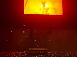 West began the Saint Pablo Tour in Indianapolis, Indiana on August 25, 2016, introducing his new stage design to the public, impressing the attending audience.[7] On October 2, 2016, West cut his performance short at Citi Field in New York City following news of his wife Kim Kardashian being robbed at gunpoint in Paris.[8] Two tour dates were also cancelled the following week.[8]