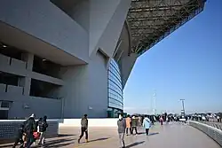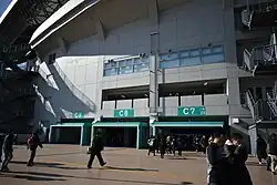 A survey in 2017[9] found that on an international matchday, with typically 60,000 attendance, 60.5% (36,000) arrived by railway,[6] 25.2% (15,000) drove cars,[6] 8.7% (5,200) took intra-prefecture shuttle bus,[6] and 3,300 (5.6%) arrived by bicycle, motorbikes or on foot.[6] On a J. League club match typically with 40,000 attendance, railway usage dropped sharply to 40.6% while usage of all other modes of transport increased.[6]