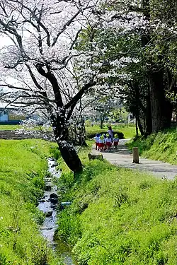 The Kiki no Michi (記紀の道; lit: Kiki path) is a walking path that surrounds the Kofun cluster with a total length of about 4 kilometers (km). Kiki is an abbreviation that refers to the Kojiki and Nihon Shoki, and the Kiki no Michi connects places of historical interest related to the Hyūga Myth described in these documents.[8] The path travels near Saitobaru Kofun Cluster's male and female mounds and travels through the place where, according to legend, Konohanasakuya-hime and Ninigi-no-Mikoto are said to have spent their married life together. However, there are several places in Miyazaki Prefecture that are said to be the setting of the same story.
