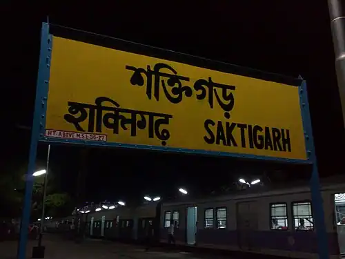 Saktigarh is a Kolkata Suburban Railway junction station on the Howrah–Bardhaman main line and Howrah–Bardhaman chord. It is located in Purba Bardhaman district in the Indian state of West Bengal. It serves Saktigarh and surrounding areas.