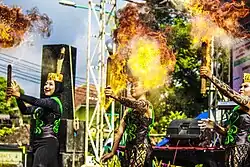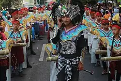 The parade marches their route throughout the city, announcing their presence with music played by a Drumblek, which is a traditional drum band originated in Salatiga. This form of cultural music is played from repurposed materials such as barrels. It was pioneered by the artist Didik Subiantoro Masruri in 1986. This particular band style based on recycled items was a result of the lack of funds in celebration of Indonesia’s Independence Day.