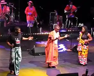 Salegy (Malagasy pronunciation: [ˈsaleɡʲ]) is a popular music genre from Madagascar. Originating as a Sub-Saharan African folk music style in the northwestern coastal areas of Madagascar, modern salegy is the genre of Malagasy music that has gained the widest recognition and commercial popularity in the international market. Its sound is considered emblematic of the island.[1] Eusèbe Jaojoby, a Sakalava singer from Anboahangibe , was a key originator of the style and is widely considered the "King of Salegy".[2]