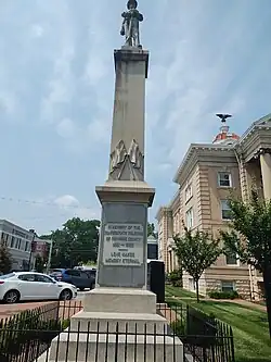 There are several historical markers in Salem, ranging from the Civil War to World War I and the Korean Independence Movement. One such marker, the Roanoke County Confederate Monument, lies in close proximity to the Old Roanoke County Courthouse. The monument was erected in 1909 by the Southern Cross Chapter of the United Daughters of the Confederacy to honor Roanoke's Confederate soldiers. The 28ft granite and marble statue depicts a standing soldier atop a pedestal. Its erection date coincides with the dedication of the courthouse and with the anniversary of Jefferson Davis's birthday.[21] The inscription reads: "In Memory of the Confederate Soldiers of Roanoke County, 1861-1865. Love Makes Memory Eternal."[21]