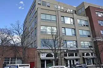The Salem Laundry is a historic laundry building at 55 Lafayette Street in Salem, Massachusetts, United States. It is listed on the National Register of Historic Places as "Salem Landry".[2] The building was erected in 1906 and is the first concrete building to be constructed in Salem. The four-story building is divided into three wide bays, with the central bay projecting slightly. The bays have broad windows divided by ashlar-tooled concrete blocks, a styling that became fashionable in the following decade before unadorned concrete became more widely used. The building was built by, and has remained in the hands of, the Hooper family. In 2003, building was converted to condos. who established a commercial laundry in Salem in 1806.[3] It was listed on the National Register in 1983.[1]