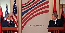- ^ "Bush Is Greeted Warmly in Albania". The New York Times. 10 June 2007. Retrieved 23 May 2010.