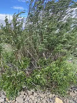 Salix schwerinii, the narrow-leaf willow,[2] is a species of willow native to northeastern Asia (from Kolyma to northeastern China). It is a shrub or a tree 10 to 15 m (33 to 49 ft) m high with long and exceptionally narrow leaves, similar and closely related to Salix viminalis.