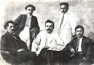 Salman Mumtaz, who received spiritual strength from personalities like Mirza Alakbar Sabir and Mirza Jalil Mammadguluzade, created his artistic creativity in communication with friends such as Abdurrahim Bey Hagverdiyev, Huseyn Javid, Huseyn Sadiq (Seyid Huseyn), Abdulla Shaig, Jafar Jabbarli, Mikayil Mushfiq. His closeness with Leo Tolstoy, Maxim Gorky, Rabindranath Tagore, Sadreddin Aini and other masters of words also left certain traces in his outlook.[18]