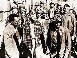 According to one journalist's account, "During the course of production in New Mexico in 1953, the trade press denounced it as a subversive plot, anti-Communist vigilantes fired rifle shots at the set, the film's leading lady Rosaura Revueltas was deported to Mexico, and from time to time a small airplane buzzed noisily overhead ... The film, edited in secret, was stored for safekeeping in an anonymous wooden shack in Los Angeles."[12] After principal photography ended, laboratories wouldn't process the film, which delayed postproduction work for months.[13] As producer Paul Jarrico recalled in a 1983 interview, "I had to trot around the country with cans of film under my arms, putting the film through different labs under phony names. We had a lot of trouble, but we did complete the film, despite the obstacles."[14]