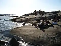 The cold bathing area in Saltholmen was built in 1908 by Viktor Balck and the swimming team.[5]: 43 Since 1976 it has been operated by the Kallbadhusets Vänner Saltholmen organisation which has 800 members. There are three nude bathing areas: one for men, one for women and one for mixed-sex bathing.[6]