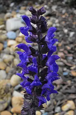 Salvia × superba grows about 1 m (3.3 ft) tall, with flowers ranging from violet-blue to pale pink. The flowers grow in whorls that are a bit more separated than in their parents. Selected cultivars include the confusingly named 'Superba', and 'Rubin'.[2] The cultivar 'Rubin'[3] has gained the Royal Horticultural Society's Award of Garden Merit.[4]