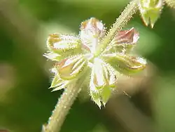 Inflorescences are 4 flowered verticillasters in loose racemes or panicles that are 15 to 30 cm (5.9 to 11.8 in), with a purple-blue corolla that is 2 cm (0.79 in).[1]
