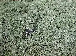 Salvia chionophylla is a low-growing evergreen perennial plant native to a small area in the state of Coahuila, Mexico. First described in 1907 by Merritt Lyndon Fernald, it was only seen in horticulture beginning around 1996. It is a trailing plant that spreads by rooting at its nodes, producing more trailing stems, with small rounded dove-gray leaves about 0.5 inches (13 mm) long, evenly spaced along the stem. The small blue flowers are less than .25 inches (6.4 mm) long on short inflorescences with whorls of 2–6 flowers.[1]