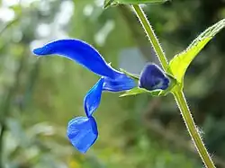 Salvia patens, the gentian sage or spreading sage, is a species of flowering plant in the sage family Lamiaceae that is native to a wide area of central Mexico. This herbaceous perennial was introduced into horticulture in 1838 and popularized a hundred years later by the Irish gardener and botanist William Robinson (1838-1935).[1]
