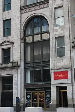 The Candler Theatre was built as part of the Candler Building, developed by Coca-Cola Company owner Asa Griggs Candler to designs by the firm of Willauer, Shape & Bready.[9][10] Candler had acquired the site in December 1911.[11][12] After initial speculation that a theater would be erected on the site,[13] Candler announced he would erect a 16- to 20-story office building for $1 million.[11][12] Candler took a long-term lease on the Bruce branch of the New York Public Library, directly to the west, in late 1912.[14] Early the next year, a syndicate headed by music publisher Sol Bloom acquired the library building, as well as a school just behind it, with plans to build a theater at the base of the Candler Building.[4][15] Theatrical designer Thomas W. Lamb was hired to design the new theater.[4] Theatrical personalities George M. Cohan, Sam H. Harris, and George Kleine leased the theater,[16][17] which was intended to accommodate not only movies but also Broadway plays.[18][19]