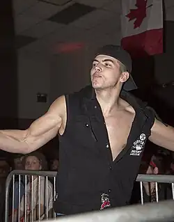 On February 7, 2019, Guevara was announced to have signed with the newly formed All Elite Wrestling (AEW).[25] At the promotion's inaugural event, Double or Nothing, on May 25, Guevara was defeated by Kip Sabian.[26] At Fight for the Fallen on July 13, Guevara teamed with MJF and Shawn Spears to defeat Darby Allin, Jimmy Havoc and Joey Janela in a six-man tag team match.[27] On the premiere episode of AEW Dynamite on October 2, Guevara lost to Cody. After the match, Guevara shook hands with Cody, before AEW World Champion Chris Jericho viciously attacked Cody from behind in front of him. Later on that night, Guevara established himself as a heel when he assisted AEW World Champion Chris Jericho, Jake Hager (who made his AEW debut), Santana and Ortiz attacking Cody, The Young Bucks and Cody's half-brother Dustin Rhodes.[28] They created a group that would become known as "The Inner Circle".[29] Guevara would then begin a feud with Darby Allin leading into 2020,[30][31] all the while assisting Jericho in his rivalries and championship defenses.[32][33] At Revolution on February 29, 2020, Guevara was defeated by Allin.[34] On the March 25 episode of AEW, The Inner Circle and The Elite were set to compete in a Blood and Guts match, but the COVID-19 outbreak would cause AEW to postpone the match.[35] Guevara would then compete in a tournament to crown the inaugural AEW TNT Champion. He was again beaten by Allin in the first round of the tournament.[36] A match between Matt Hardy and The Elite (Adam Page, Kenny Omega and The Young Bucks) and The Inner Circle would be announced for Double or Nothing, called a Stadium Stampede match. At the event, The Inner Circle faced The Elite and Matt Hardy, but were unsuccessful in winning.[37]