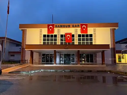 The station, located on the Samsun-Kalin Railways, was built by the State Railways and Ports Administration and entered service in 1926.[1] It is now operated by Turkish State Railways and provides limited regional train service. Service between Samsun and Çarşamba via the Samsun–Çarşamba Railway started with the opening of the station in 1926 and ended in 1971. The station remains the most active in the Samsun region with air, bus, truck and personal vehicle travel now the dominant methods of transportation into Samsun Province.