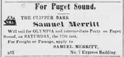 - ^ a b "Clipper bark Samuel Merritt". cdnc.ucr.edu. Daily Alta California, Volume 6, Number 72, 16 March 1855. Retrieved 8 October 2024.