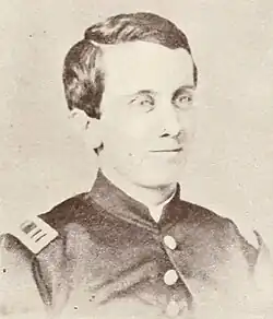 Cushing performed duties with the Union Army throughout the Civil War.[4] He assisted in organizing the Civil War Defenses of Washington in June and July, 1861.[4] He took part in the Bull Run campaign of July, 1861 as aide-de-camp to Dixon Stansbury Miles who commanded a brigade in the force led by Irwin McDowell.[4] Cushing took part in the First Battle of Bull Run on 21 July, after which he served as acting assistant inspector general on McDowell's staff.[4] From September 1861 to March 1862, Cushing organized and commanded the army's first school for the instruction of Signal soldiers, which was conducted in the Red Hill neighborhood of Washington, D.C.'s Georgetown area.[4] He was promoted to captain on 15 February 1862.[4]