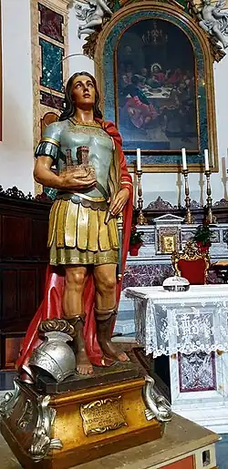 San Benedetto del Tronto was a martyr[15] and a soldier born in Cupra during the reign of Roman Emperor Diocletian. Shortly thereafter, following the edict of Constantine in 313 AD, some believers built a chapel around the tomb. Since then, San Benedetto has been highly revered by locals. He later built a small church which included an apse facing the east and its entrance facing the west, in accordance with the early Christian tradition that the east, where the sun rises, and the sunrise is symbolic of Christ's resurrection. Historians argue that archaeological findings indicate Roman origins, linking San Benedetto to the ancient city of Alba Picena on the right bank of the Albula river.