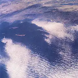 Its highest point is Mount Thirst, at 1,965 feet (599 m) in elevation.[6] The elevation of the island's ridge can impact precipitation, as it can cause atmospheric moisture to condense and cause more intense precipitation. This was a factor in the intense rainstorm that hit San Diego on January 22, 2024.[7]