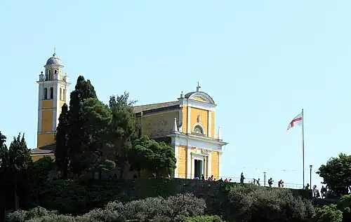 The church is located on a cliff overlooking the sea in the village of Portofino, in the Metropolitan City of Genoa.
