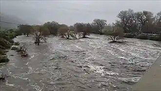 The San Jacinto River is a 42-mile-long (68 km)[5] river in Riverside County, California. The river's headwaters are in Santa Rosa and San Jacinto Mountains National Monument.[6] The lower portion of the 765-square-mile (1,980 km2) watershed is urban and agricultural land. As a partially endorheic watershed that is contiguous with other Great Basin watersheds, the western side of the San Jacinto Basin is a portion of the Great Basin Divide.