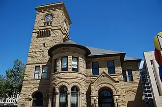 The museum's 33,000-square-foot historic wing was originally designed by federal architect Willoughby J. Edbrooke.[5] Built from local Greystone Quarry sandstone in 1892, the structure was designed to serve as the main post office for the city of San Jose.[9][4] It is an example of the Richardsonian Romanesque architecture style.[10] The original steeple and clock tower were damaged in the 1906 earthquake.[9] From 1937 to 1969 the historic wing served as the city of San Jose's library. The building was then converted by the Fine Arts Gallery Association,[11] a group of community members and San Jose State University art professors, who then reopened it as the Civic Art Gallery. In 1972 the building was named a California Historical Landmark (#854),[12] and in 1973 it was added to the National Register of Historic Places.