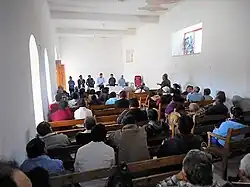 Among the Dominican religious who came to Achiutla was Fray Benito Hernández who wrote his Christian catechism written in Mixtec,[7] and to whom is attributed the evangelization of the Mixtecs of Ñuu Ndecu; people that continued practicing their ancient religious customs in a hidden form in the caves and hills close to the place making worship to "The People’s Heart" deity . Fray Benito heard about the existence of this image and rose to the summit in question, where destroyed the ceremonial center.