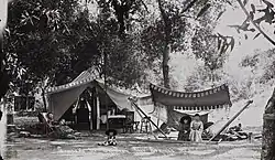 According to Mission San Juan Capistrano's application for the National Register of Historic Places, "Published oral accounts indicate that a sizable Indian settlement was located near the springs."[1] The Acjachemen (Juaneño) village at the springs was called Paala Sáqqiwvna, and the springs have been tentatively associated with the name Palasakeuna, although this correlation is disputed and may apply instead to Murrieta Hot Springs.[2] According to U.S. government geologist Gerald A. Waring's report of 1915, the springs "were formerly visited by the Indians, who built mud huts (temescals), for use as vapor-bath chambers. The springs are mentioned in the records of the Franciscan friars, who visited them when in charge of the mission at San Juan Capistrano."[3] After the missionaries came, they built an adobe structure near the springs that was used as a sort of parsonage or mission annex.[1] An old-timer recalled the springs as they were in the 1870s, writing to the Los Angeles Times, "I have been familiar with these springs and their many benefits to mankind...since 1873 and can testify to the value of their mineral waters. Back in the seventies, there was a passable trail, and the wayfarer making a pilgrimage to the healthful shrine was sure of a friendly welcome from the native Indians that frequented the place, with their sick [and] lame..."[4] In oral history interviews done in the late 20th-century, Acjachemen people described their grandparents going to the hot springs area in the autumn to collect acorns for food.[5]