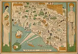 Historical map of Orange County by Jean Goodwin, 1929, showing San Juan Hot Springs (Barry J. Ruderman 46690)