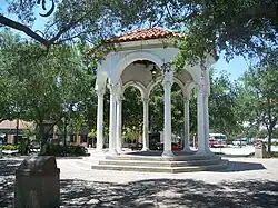 San Marco Square is the neighborhood's major commercial district. The triangular district is located at the three-way juncture of Atlantic Boulevard, Hendricks Avenue and San Marco Boulevard; a tiered fountain at the center of the square originally marked the convergence of these streets.[21] The San Marco Building, a Mediterranean Revival structure completed in 1927, was the district's first commercial building and set its architectural tone.[26] Other features of the square include the San Marco Theatre, an art deco single-screen movie theater first opened in 1938;[27] and the Little Theatre, home to Theatre Jacksonville, one of the country's oldest community theater troupes.[28]