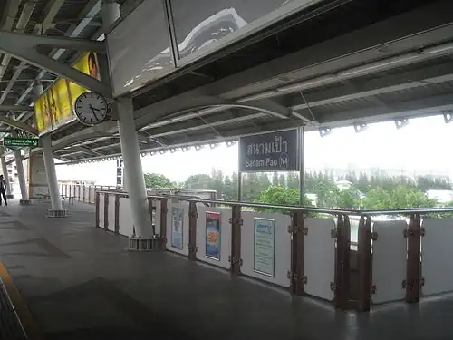 Sanam Pao station (Thai: สถานีสนามเป้า, pronounced [sā.tʰǎː.nīː sā.nǎːm pâw]) is a BTS skytrain station, on the Sukhumvit Line in Phaya Thai District, Bangkok, Thailand. The station is on Phahon Yothin Road near Soi Phahon Yothin 3 in Sanam Pao area, among office towers, an army base, and the site of Royal Thai Army Radio and Television Channel 5.