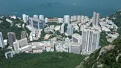 The developed area at Sandy Bay is home to numerous facilities including Kennedy School, West Island School, the University of Hong Kong Stanley Ho Sports Centre, numerous hospitals and rehabilitation homes[1] such as the Duchess of Kent Children's Hospital. The Chinese Christian Cemetery was established in 1909 and is one of Hong Kong's largest columbaria.[2] There is a track there which schools can book for use. There is a long jump pit, high jump set up, hurdles and other track and field set ups available at the area. It is opposite Kennedy School.