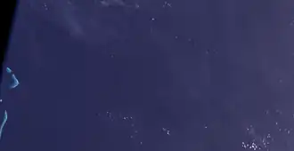 The status of the purported island also became the subject of discussion on scientific mailing lists, such as GMT-HELP, in late November 2012.[16] Some scientists were initially skeptical that such an error could exist, since a signature was present in various global terrain data sets, such as the bathymetric data from the General Bathymetric Chart of the Oceans, which reported an elevation of 1 metre (3 feet) over the location of Sandy Island. Some data sets derived from satellite imagery indicated that sea surface temperatures were absent in the location, suggesting the presence of land. However, it became apparent that a land mask was applied to these data sets during pre-processing to differentiate between land and water. Since the World Vector Shoreline Database (WVS) has become the standard global coastline data set used by the scientific community, errors that existed in WVS propagated into data sets that use a land mask. Therefore, rather than providing independent evidence for the existence of an island, the appearance of Sandy Island in bathymetry and satellite imagery data sets originated from spurious digitized geometries derived from the WVS database.[10]