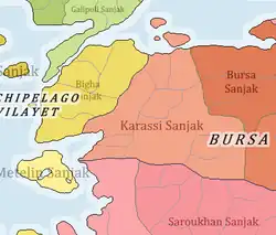 Karasi Sanjak, (Turkish: Karesi Sancağı; c. 1341–1922) was one of the first sanjaks of the Ottoman Empire established around 1341 and disestablished after signing the Treaty of Lausanne.