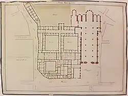 Although a document dated March 20, 1280, which reads "in domo ecclesie sancte Anasasie" shows that the Dominicans were already involved in the new project, it took about thirty years after the abandonment of Maria Mater Domini before the actual construction began.[17][18] It is probable, however, that even though the construction of the basilica had not yet begun, the construction of the monastery had begun in the meantime, and in the 80s it took on an essentially definitive character, modified only by some transformations that took place between the 14th century and the first half of the 15th century. The complex had four cloisters, the largest of which was called the "Cloister of the Dead" for its particular use, and several service rooms, including dormitories, the refectory, the studium with its library, and the main chapter.[19][20]