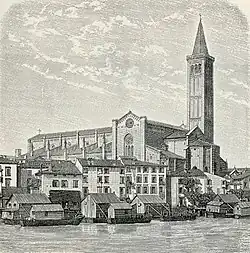 The beginning of its construction dates back to 1260, when the Dominican friars, who lived outside the walls of the city, received from the Bishop of Verona, Manfredo Roberti, the land on which to build the new church and convent. The construction of the great building began in 1290 and it took a very long time: it can be said that it was finished only in the 1440s, although the basic structures were already finished in the third decade of the previous century.[4] The basilica was consecrated on October 22, 1471 by Cardinal and Bishop of Verona Giovanni Michiel, but minor works continued for more than two centuries, never reaching the completion of the main elevation.[5] When the Dominican Order was suppressed in 1807, the temple was entrusted to the secular clergy, while the adjacent convent, now abandoned, later became the site of the Istituto Maffei.