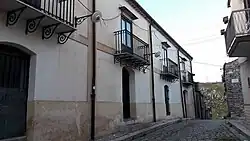 Is the mansion belonging to the Albanian noble Muzaka family, it was the seat of the Municipality of Santa Cristina Gela. It has been declared of historical interest and has recently been restored. It is of simple construction with two floors above ground, the façade on Largo Musacchia Street is simple, consisting of four doors with round arches and four balconies on the upper floor, and is rhythmically marked vertically by gray downspouts, while horizontally it is enclosed by a frame formed by the drips of the tiles. In the lower part of the block above the Magaseno house and in continuation of the Musacchia houses there is a small terrace with railings and masonry columns from which the rural landscape is visible. It currently houses the municipal library and is the venue for cultural events.