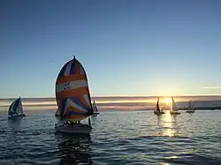 Wednesday night sailing on the Monterey Bay off Santa Cruz, California at sunset in September, 2014 with the Santa Cruz Yacht Club