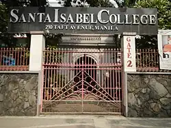 The Santa Isabel College, also referred to by its acronym SIC, is a private, Roman Catholic college owned and operated by the Sisters of Charity of Saint Vincent De Paul in Ermita, Manila, Philippines. It was founded on 24 October 1632. Santa Isabel College is one of the oldest colleges in the Philippines and in Asia.